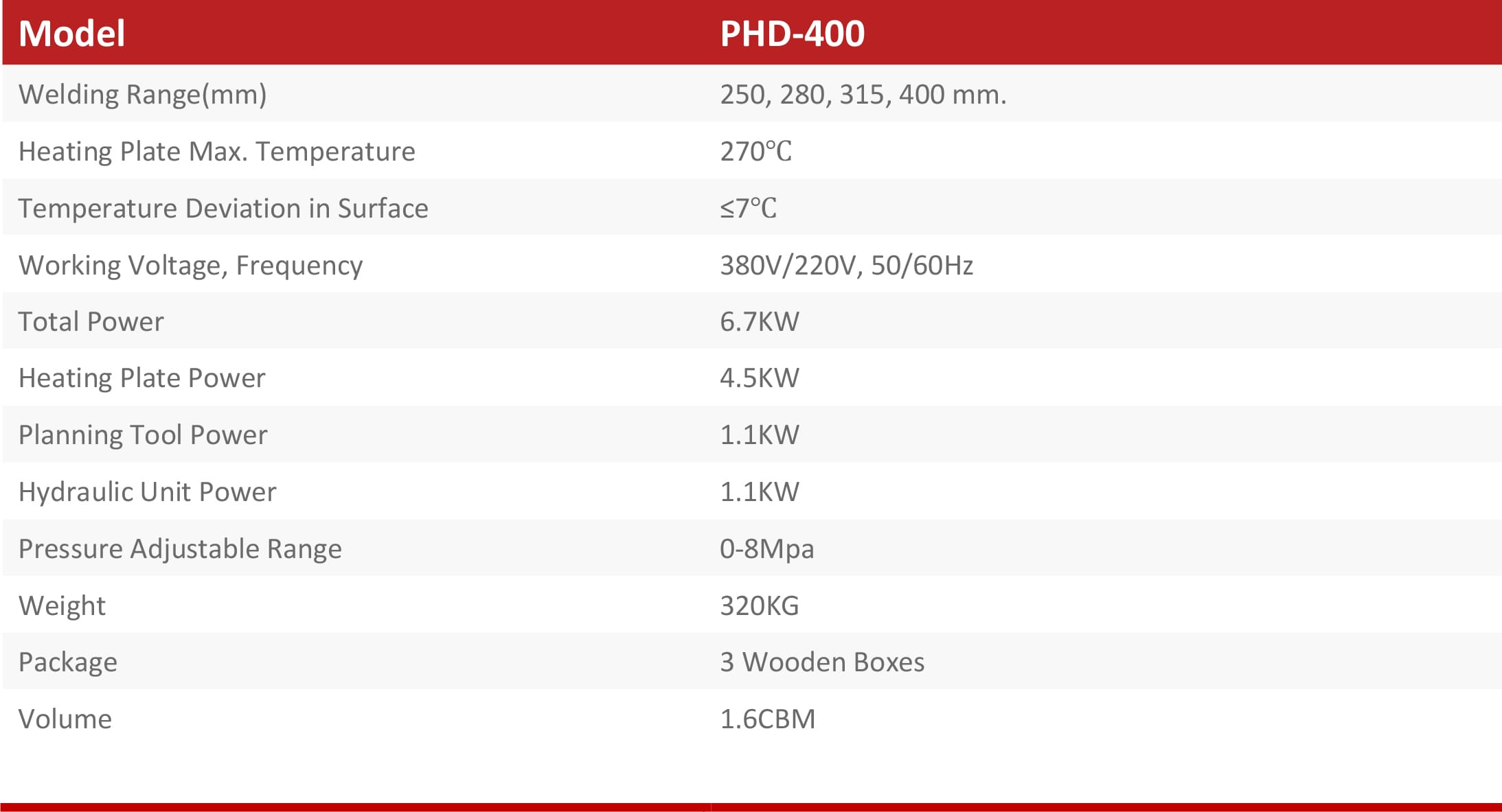 เครื่องเชื่อมท่อ HDPE 400 mm. แบบไฮดรอลิค รุ่น PHD-400 สำหรับเชื่อมท่อขนาด 250, 280, 315, 355, 400 mm.